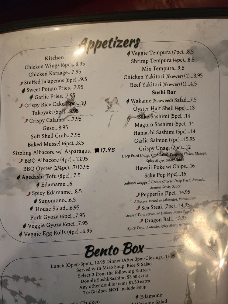 Kyoto Sushi Bar Grill & Ramen, located in Sacramento, CA, offers a wide variety of options for sushi, ramen, and other Japanese dishes. With soy-free, vegan, and vegetarian options available, the restaurant ensures that there is something for everyone. The menu includes mouthwatering appetizers like Crispy Calamari and Hawaiian Ahi Poki, as well as fresh sushi nigiri selections such as Yellowtail and Salmon Roe. One standout item is the Dinner Bento Box, perfect for those looking for a complete meal. The restaurant also provides various amenities like delivery, takeout, and waiter service. From the casual and comfortable atmosphere to the delicious food options, Kyoto Sushi Bar Grill & Ramen offers a delightful dining experience for all food enthusiasts.